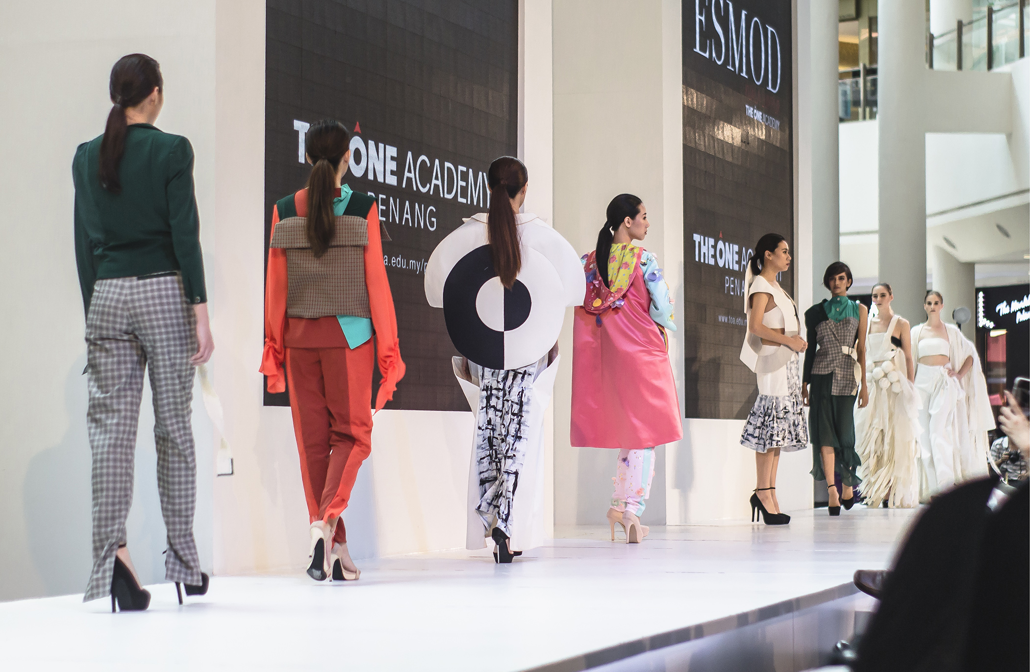 Garments by ESMOD Kuala Lumpur graduates on the runway of Penang Fashion Week 2018.