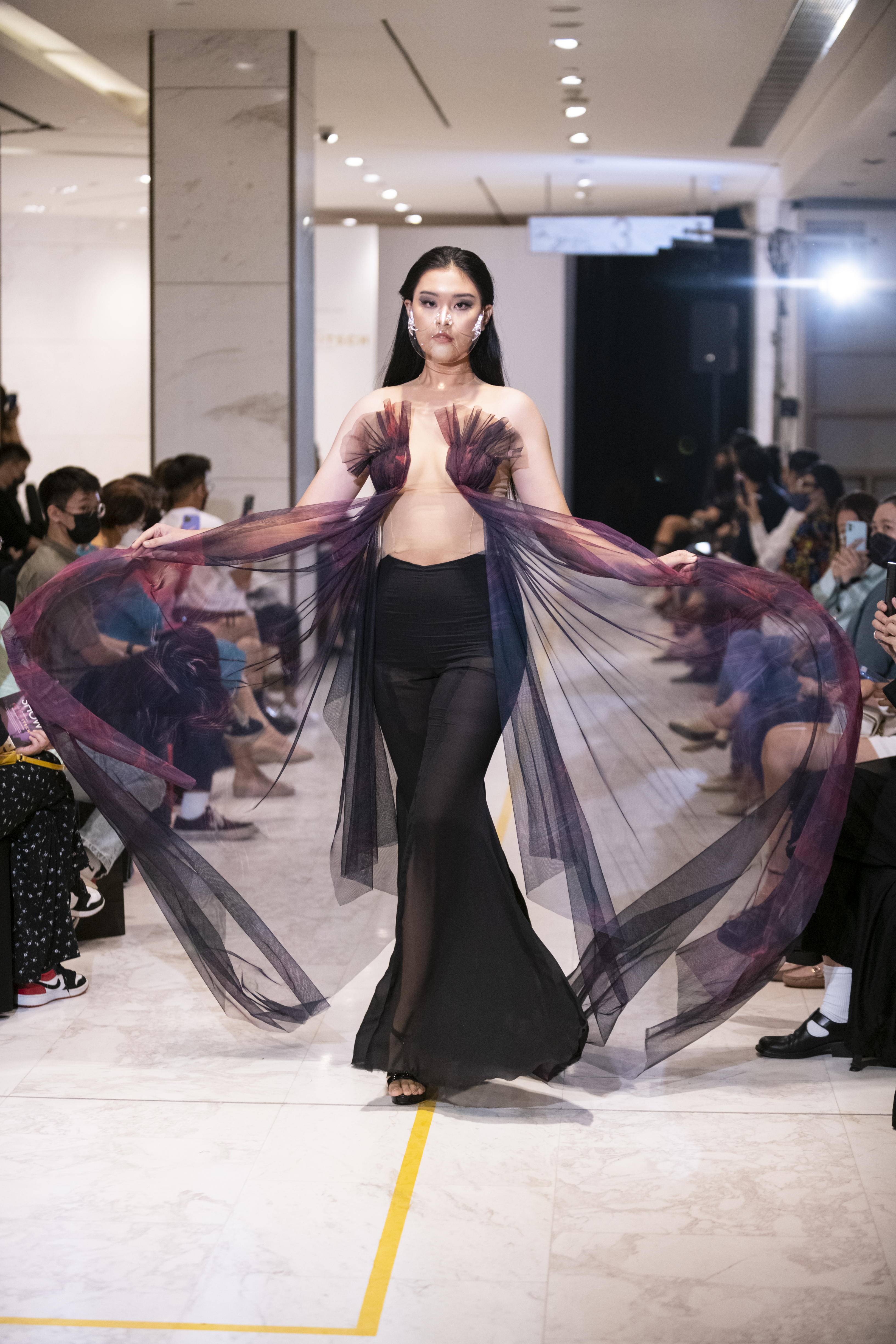 The fashion designers presented their collections which were split into four categories of looks: Nouvelle Couture, Womenswear RTW (Luxury), Womenswear RTW and Menswear RTW. “Empowering the Queens” by Fong Hui Yi symbolized the idea that every woman is a queen, beautiful and elegant, yet strong and powerful. Eugene Chow’s “The Back of Beyond” told the life of an introvert who enjoys solitude.