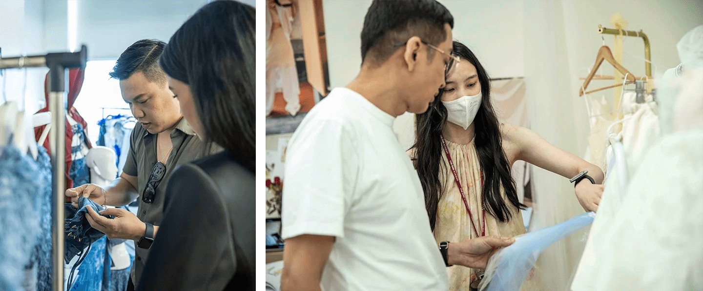 During the Jury Week, these aspiring designers painstakingly prepared their showcase booth to impress the jury panel consisting of renowned names in the fashion design industry – Khoon Hooi (Creative Director of Khoon Hooi Couture), Bon Zainal (Founder of Bon-D), Jonathan Cheng (Founder of UnitedWood), Justin Yap (Founder of Justin Yap Atelier), and Paul Marchand (ESMOD Paris’ Head of Fashion Design).