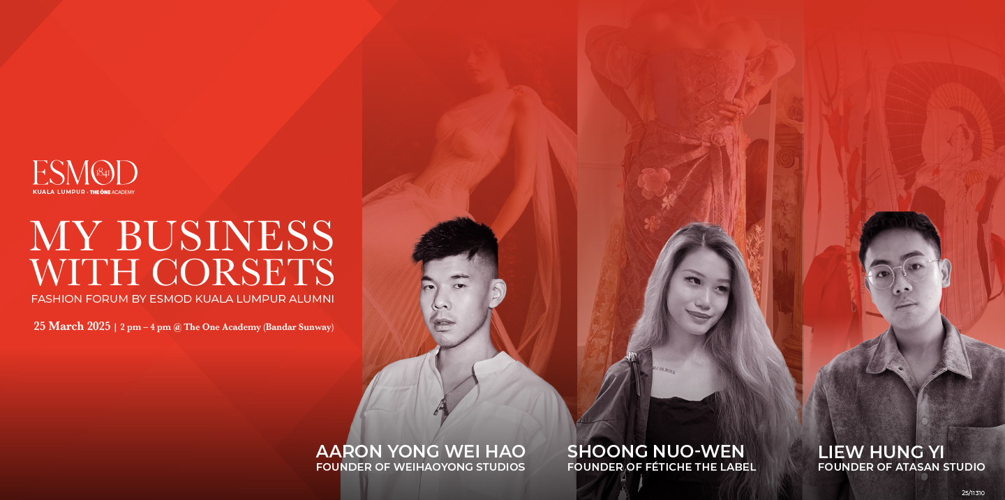 This Alumni Forum brings you three exceptional voices, 3 of our esteemed ESMOD KL alumni. Join us for a captivating talk where you'll gain unique perspectives on different parts of the fashion industry, their individual entrepreneurial success, and the art of corset creation! Expect a blend of practical advice and breathtaking visuals. Don't miss this opportunity for free, invaluable insights!